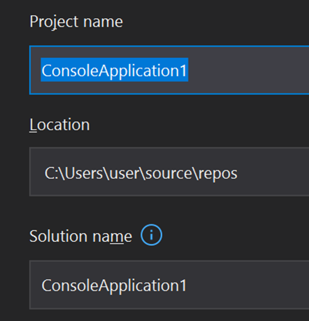 Після чого вам запропонують вказати назву проекту (перший рядок. Варто вказувати без пробілів), папку в якій буде збережено ваш проект (другий рядок. Варто уникати назв в яких є Кирилиця. Тобто, де є літери), та назву папки проекту (третій рядок).