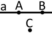 Точки можуть знаходитися (лежать) на прямій або ще можна сказати, що пряма проходить через точки. Намалюємо пряму та позначимо точки та які лежать на прямій (пряма проходить через ці точки), а також точку яка не лежить на прямій Часто використовують скорочене позначення: символ означає тобто можна написати так а символ означає тобто можна записати так